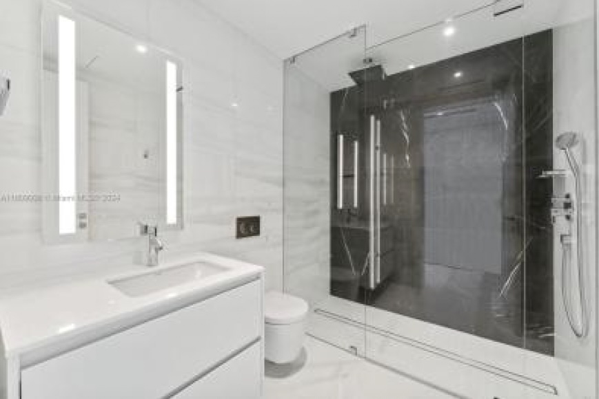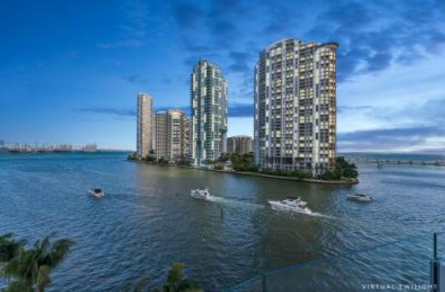 This expansive 4-bedroom, 4.5-bathroom home with a library boasts high-end Gaggenau appliances, presenting a refined living space that overlooks the mesmerizing meeting point of the Miami River and Biscayne Bay.