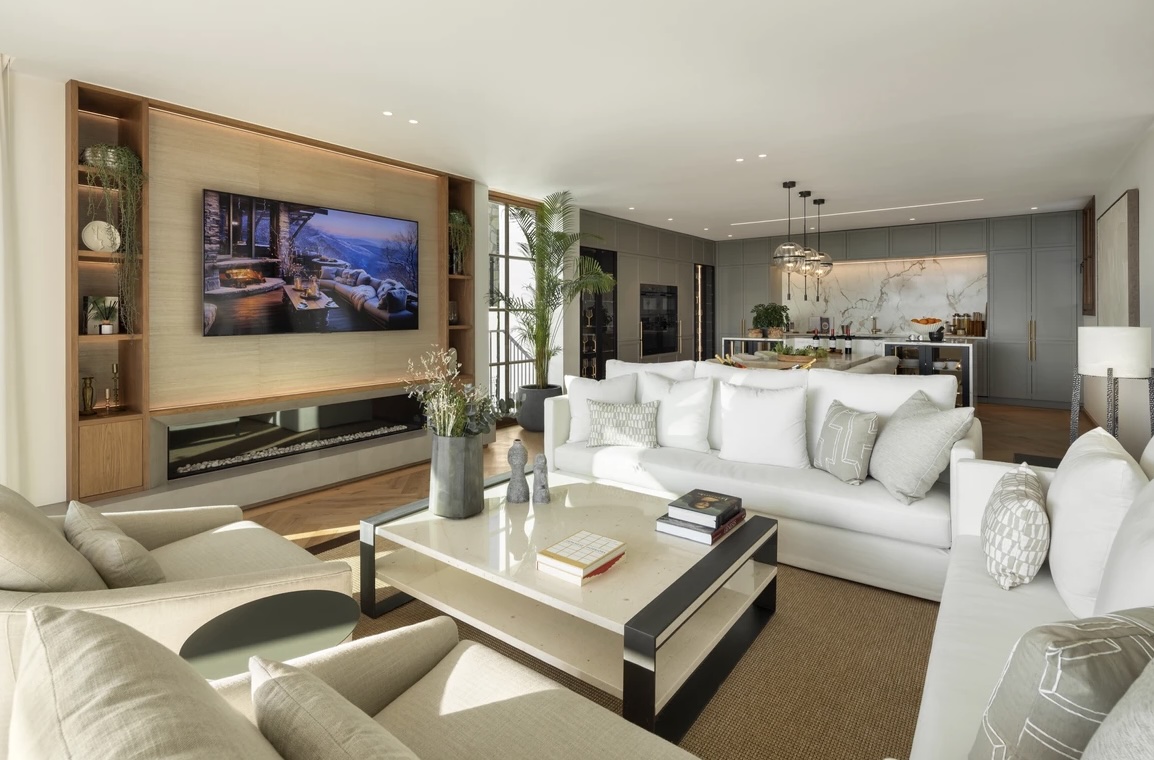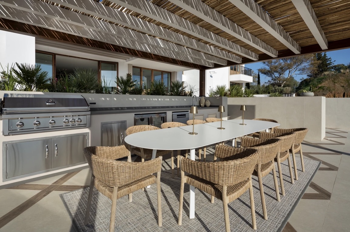 Additionally, a sunken chill-out zone and an outdoor kitchenette with a BBQ offer a convenient setup for entertaining guests.