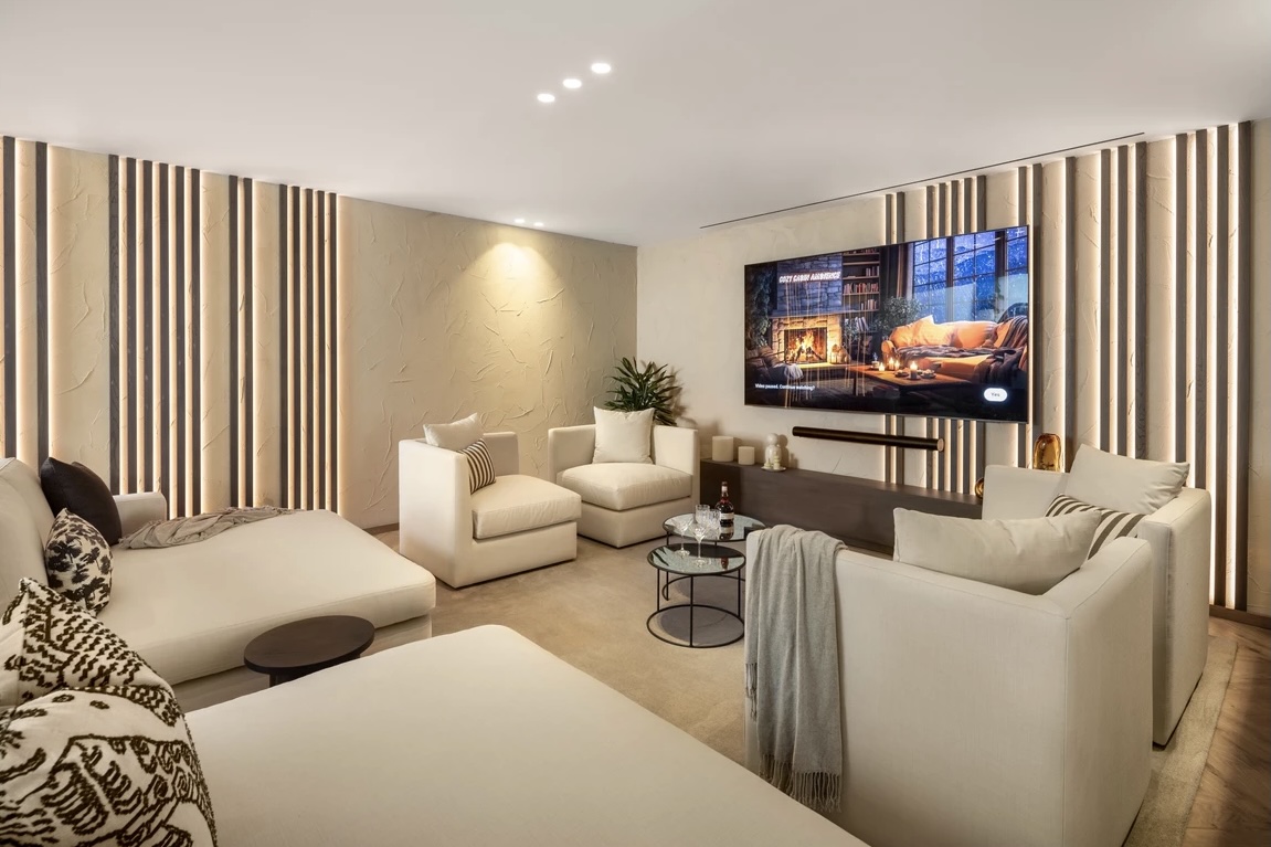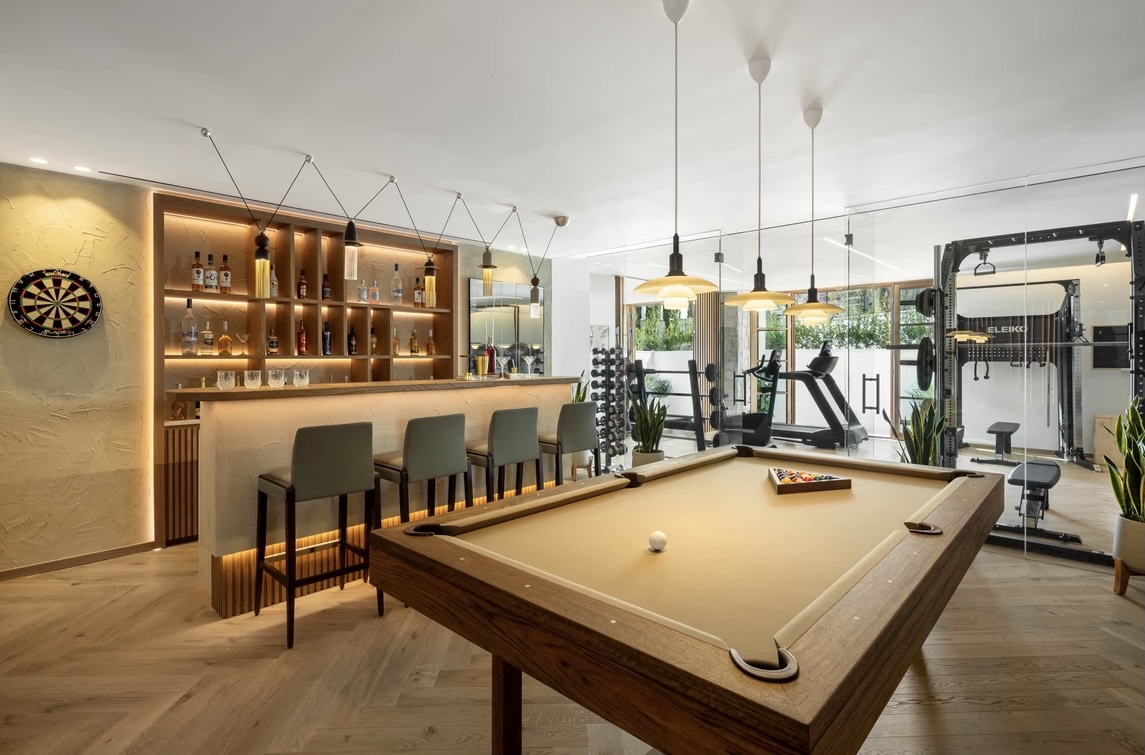 The villa comes with a host of custom-designed amenities, including a fully equipped home gym, a serene spa complete with a jacuzzi and sauna, a unique entertainment area, and a bespoke poker room.