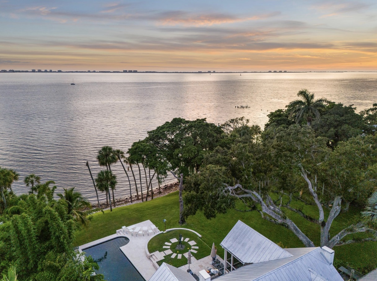The breathtaking estate boasts 220 feet of prime Sarasota Bay frontage, providing expansive bay views from nearly every room.
